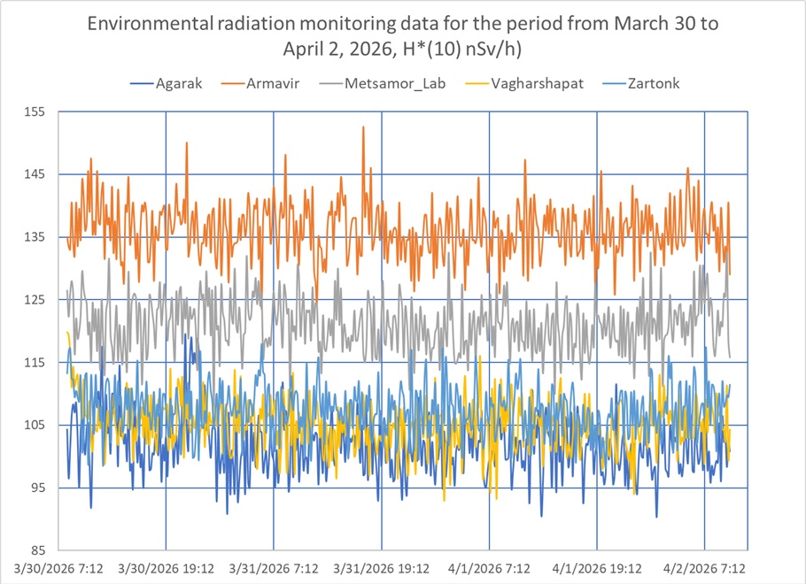 Շրջակա միջավայրի ճառագայթային մշտադիտարկման տվյալներ, 2026 թվականի մարտի 30-ից ապրիլի 2-ը ժամանակահատվածի համար
