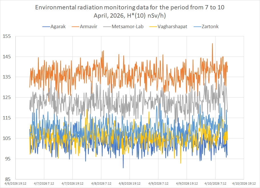 Շրջակա միջավայրի ճառագայթային մշտադիտարկման տվյալներ, 2026 թվականի ապրիլի 7-ից 10-ը ժամանակահատվածի համար