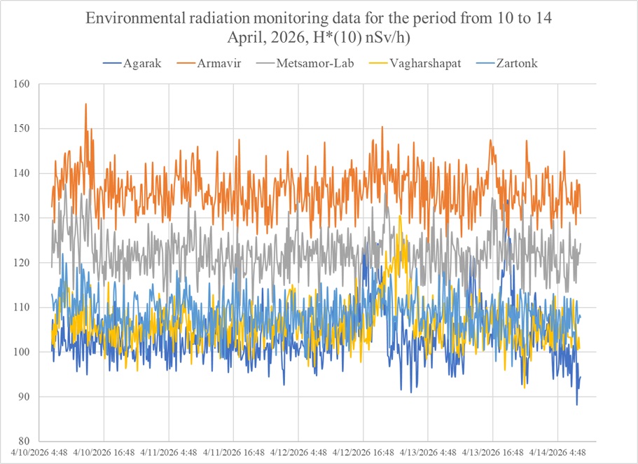 Շրջակա միջավայրի ճառագայթային մշտադիտարկման տվյալներ, 2026 թվականի ապրիլի 10-ից 14-ը ժամանակահատվածի համար
