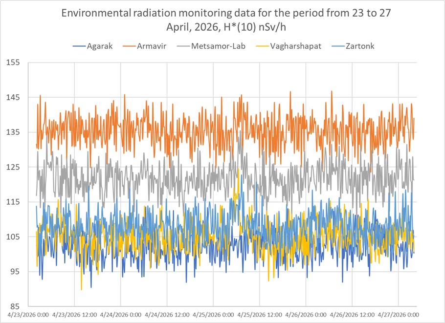 Շրջակա միջավայրի ճառագայթային մշտադիտարկման տվյալներ, 2026 թվականի ապրիլի 23-ից 27-ը ժամանակահատվածի համար