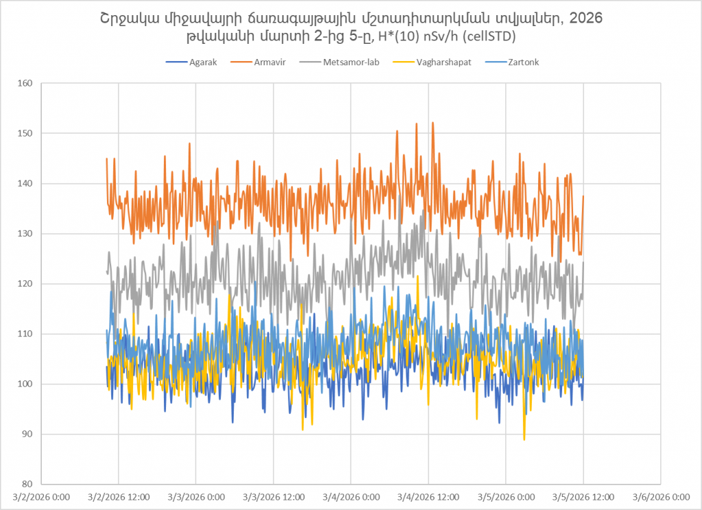 Շրջակա միջավայրի ճառագայթային մշտադիտարկման տվյալներ, 2026 թվականի մարտի 2-ից 5-ը